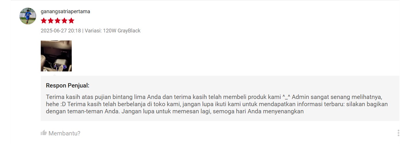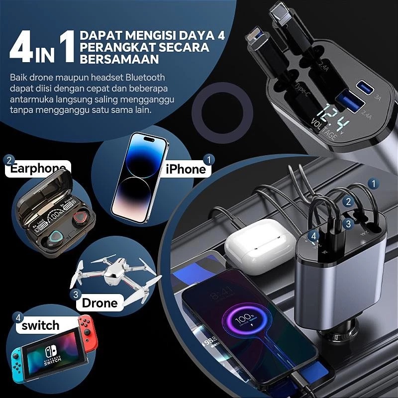 Dilengkapi kabel retractable 80cm dan teknologi fast charging 120W, charger ini adalah solusi sempurna untuk mobilitas tinggi.