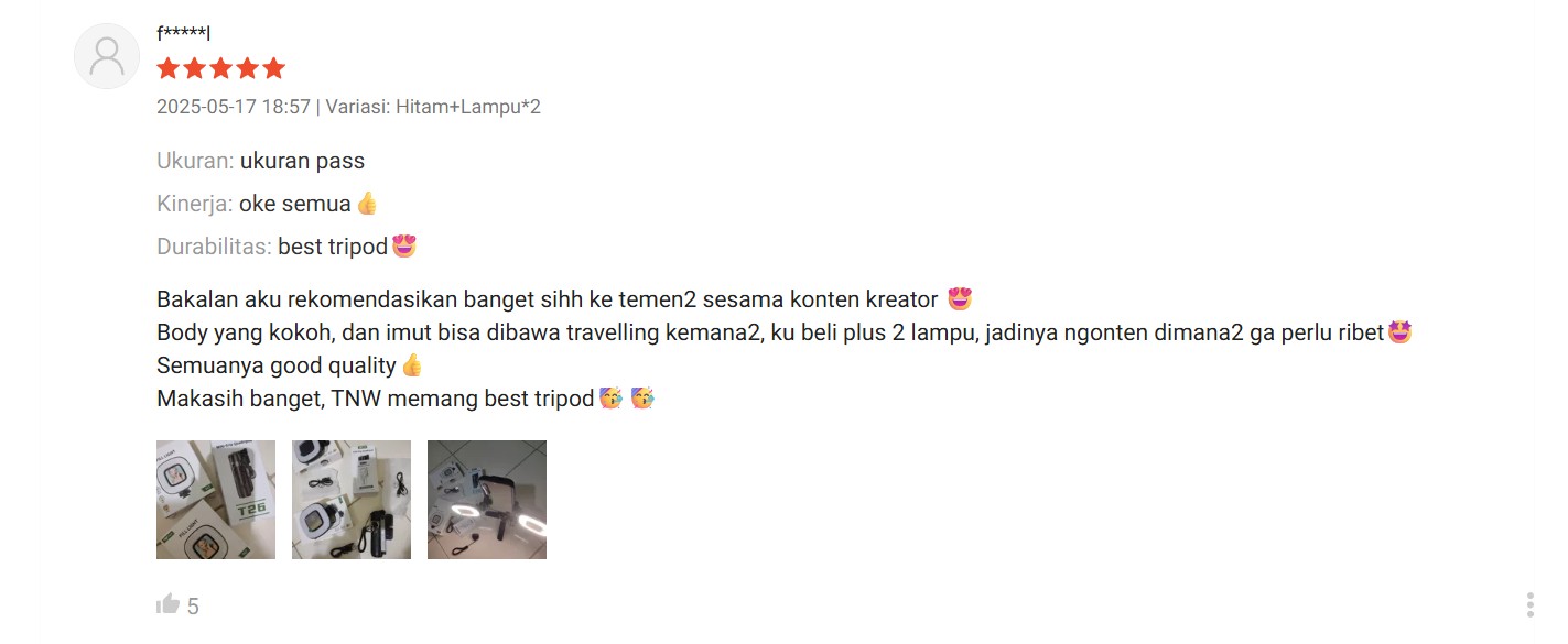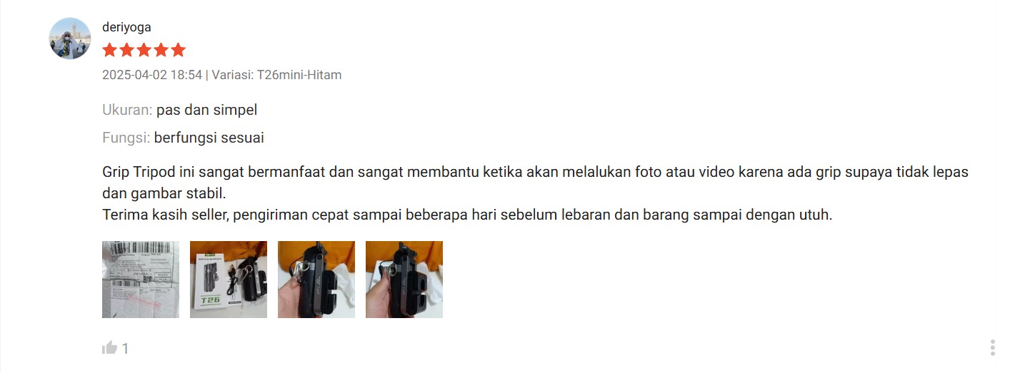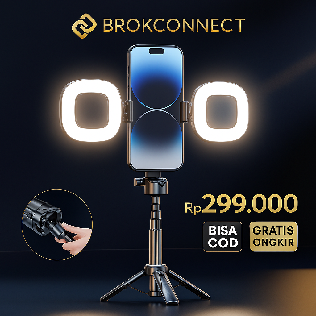 3-in-1: Berfungsi sebagai Tongkat Selfie, Tripod Meja, dan Dudukan Live Streaming.